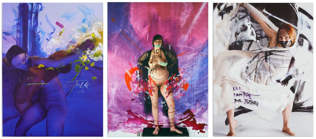 Teile der in den Prozessen entstandenen Fotografien sind unter der ebenfalls fortlaufenden Werkgruppe Die Identitätsfalle zusammengefasst. Darin werden die Performances innerhalb der Ecstatic Voyagers dokumentiert und zugleich durch Textzeilen ergänzt, die an Slogans erinnern und (moderne) Archetypen assoziieren.
