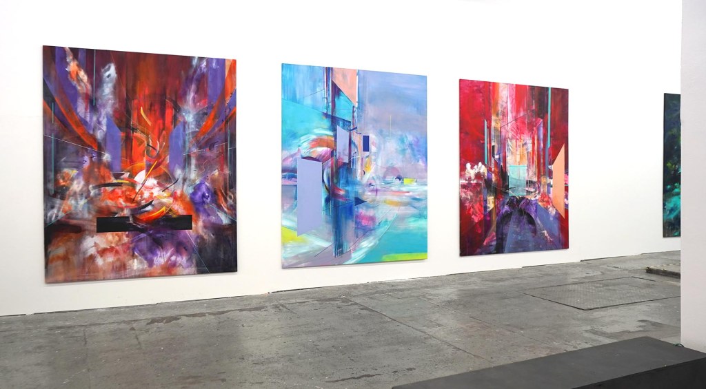 Die Ecstatic Voyagers sind eine fortlaufende Reihe großformatiger Malereien (aktuell 18 Werke, meist 240 x 200 cm), welche Lucian Patermann seit dem Frühjahr 2021 kontinuierlich entwickelt und erweitert. Wie der Titel der Reihe schon vermuten lässt, verbirgt sich hinter jedem der Bilder, eine Geschichte die sich in die Leinwand eingeschrieben hat – eine Reise.