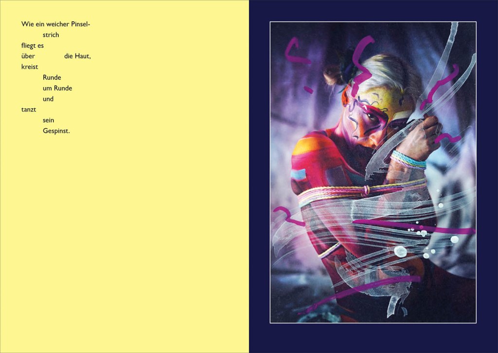 Diese Zeilen sind ein Auszug aus der Geschichte von keinem Schmetterling – einer Miniatur eines modernen Märchens, begleitet von einer Serie bemalter Fotografien. Es ist eine Geschichte von Ambivalenz, Brüchen und Vielseitigkeit – ein farbenfrohes Abtauchen in einem Kokon, auf 44 Seiten, die jetzt in einer Auflage von 50 nummerierten und handsignierten Exemplaren erhältlich sind.